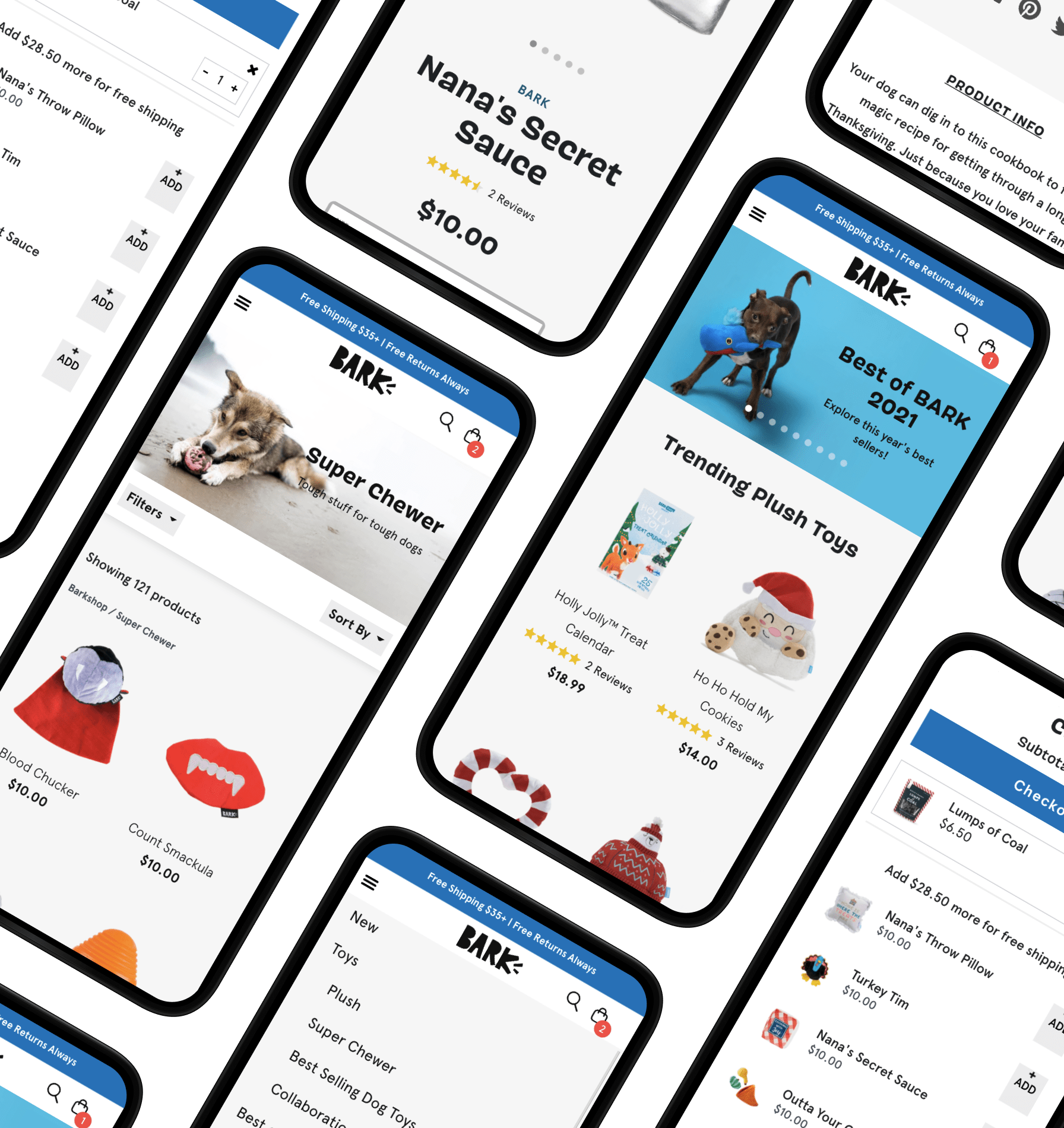 We worked closely with Bark to replatform them on Shopify so they could easily spin up new pages, modules and sites for their growing assortment of products and enable them to scale internationally with ease.