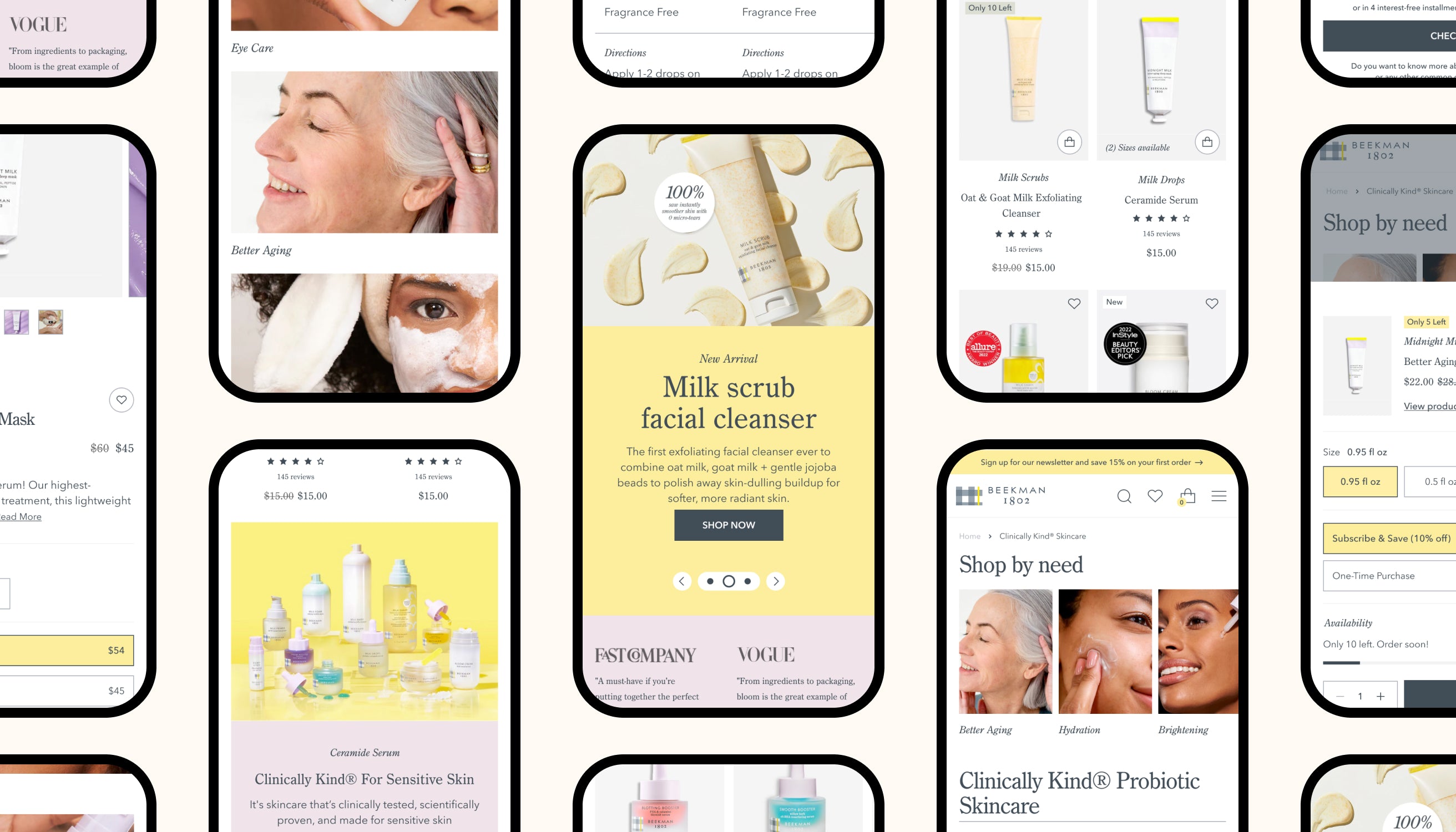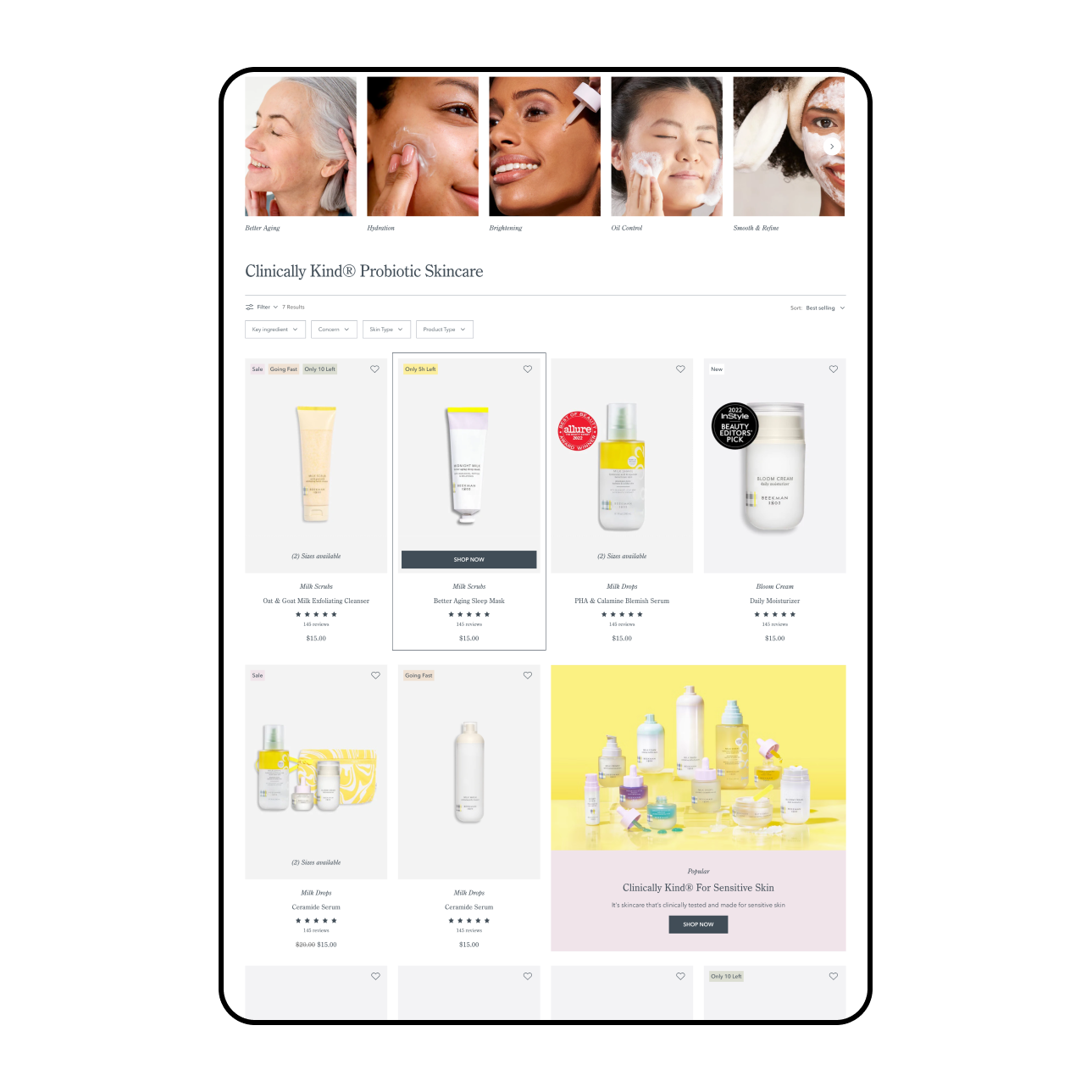 In making these updates, Beekman’s beloved products are showcased more effectively, the team is able to curate merchandising opportunities throughout the year, and we are able to highlight specific attributes – like lifting and firming vs. brightening – so that the brand’s story is woven thoughtfully throughout the browsing experience.
