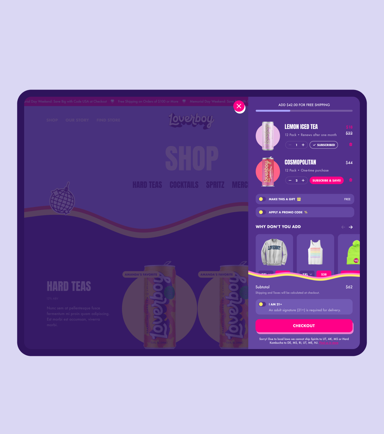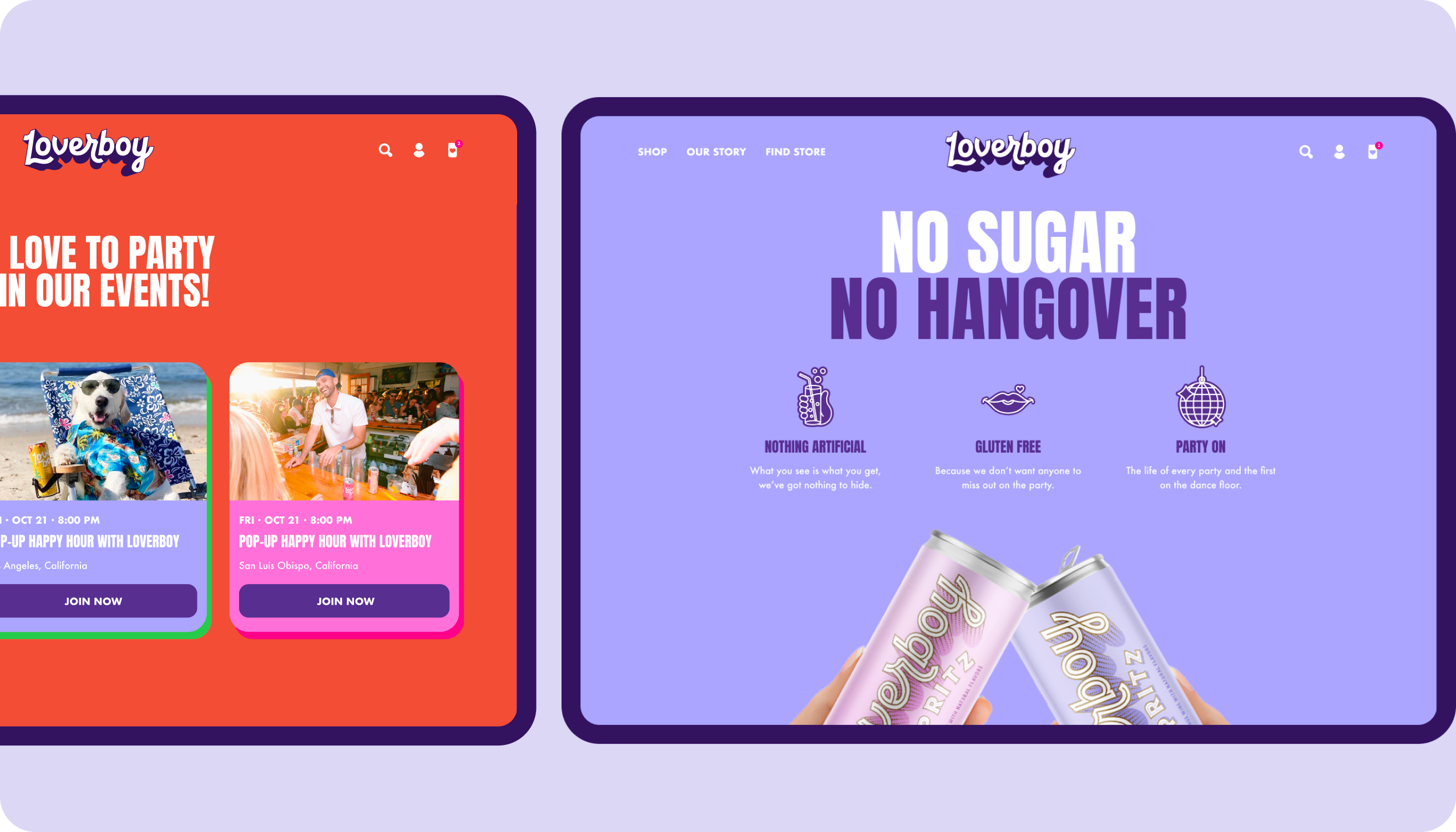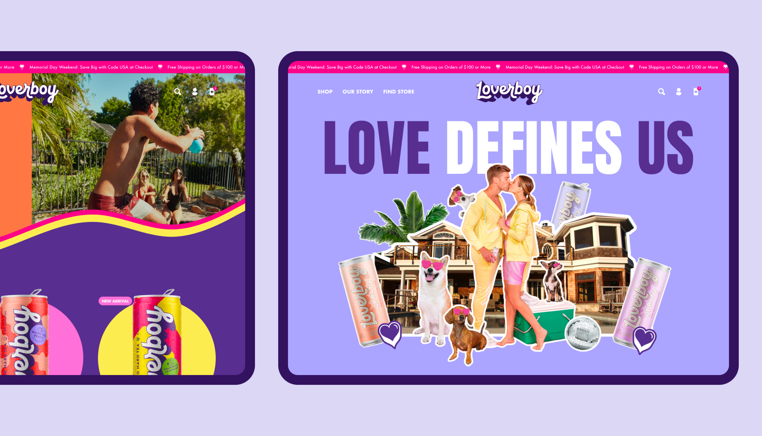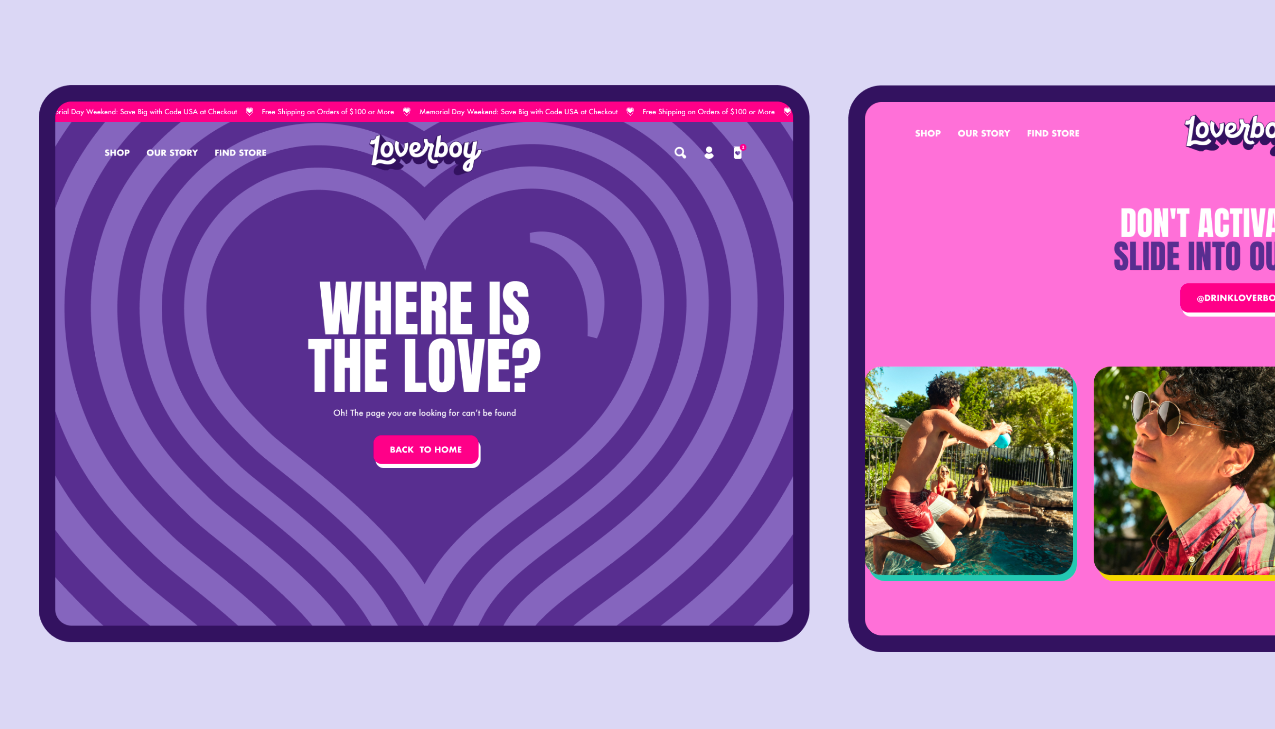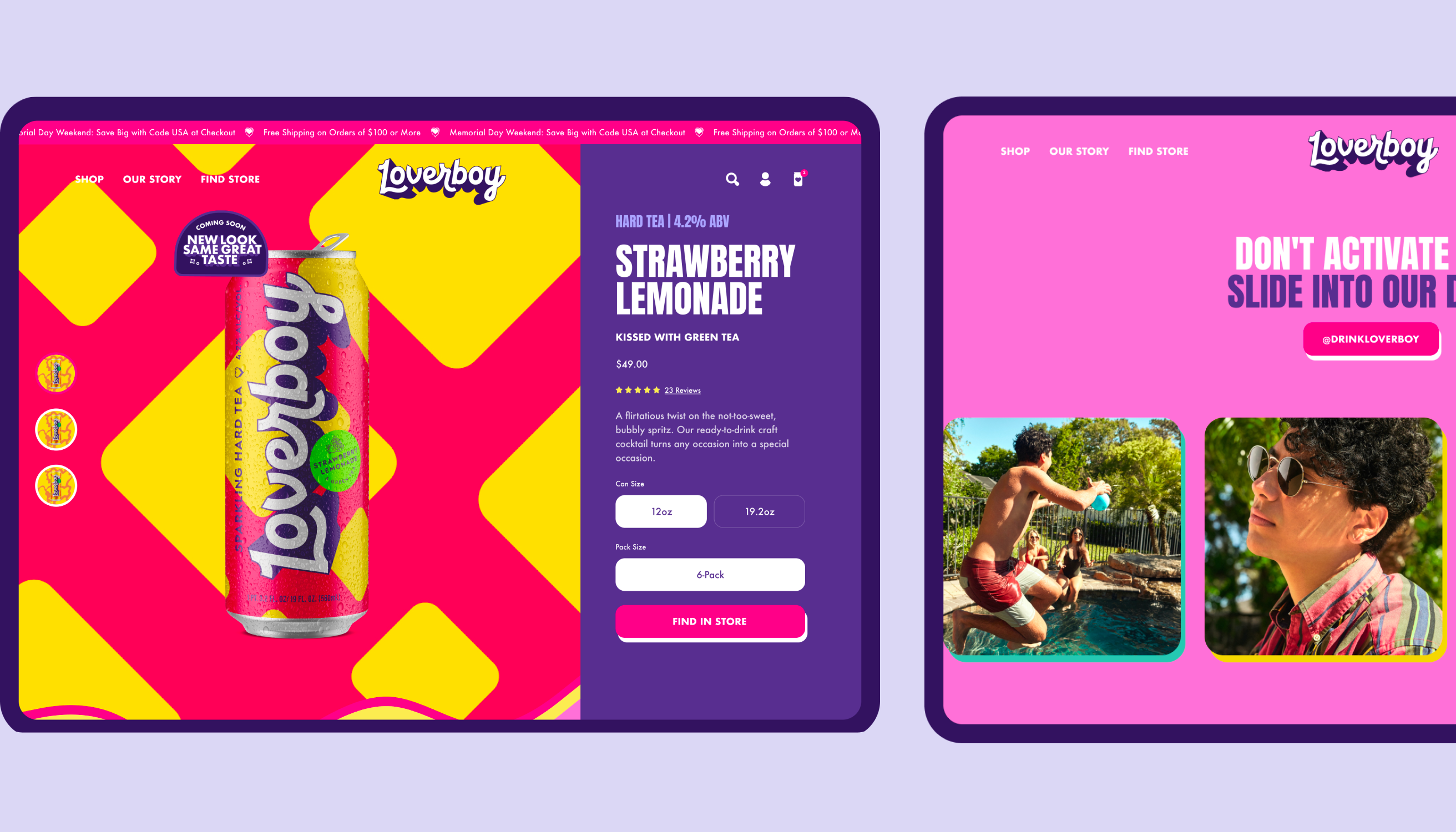 As a result, many of Loverboy’s customers come to the site by way of the founders’ social media presences, so it was important that we placed them prominently throughout the site – underscoring that unlike most celebrity brands, Kyle, Amanda and Carl are in the trenches building Loverboy from the ground up.