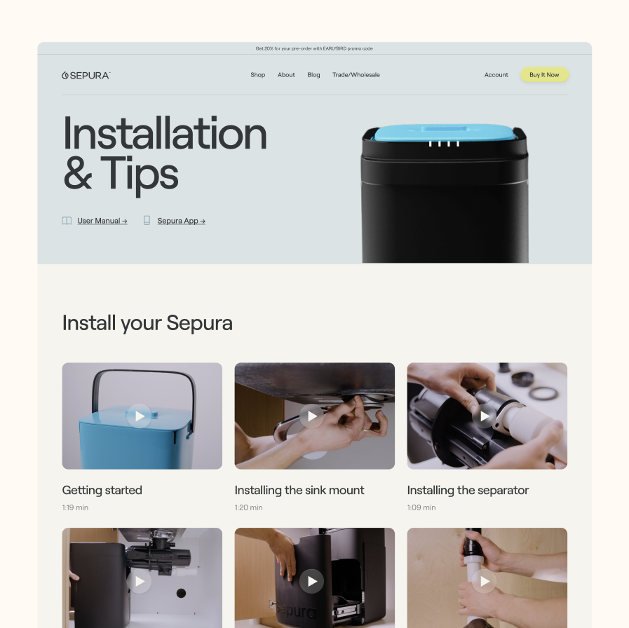 The installation page is a testament to the brand’s commitment to user-friendliness and seamless integration. Recognizing that the installation process can be daunting for many, we outlined a step-by-step video guide so that every user, regardless of their technical prowess or handyman skills, can install their unit with ease.