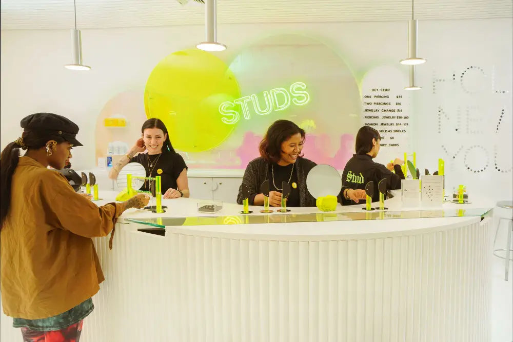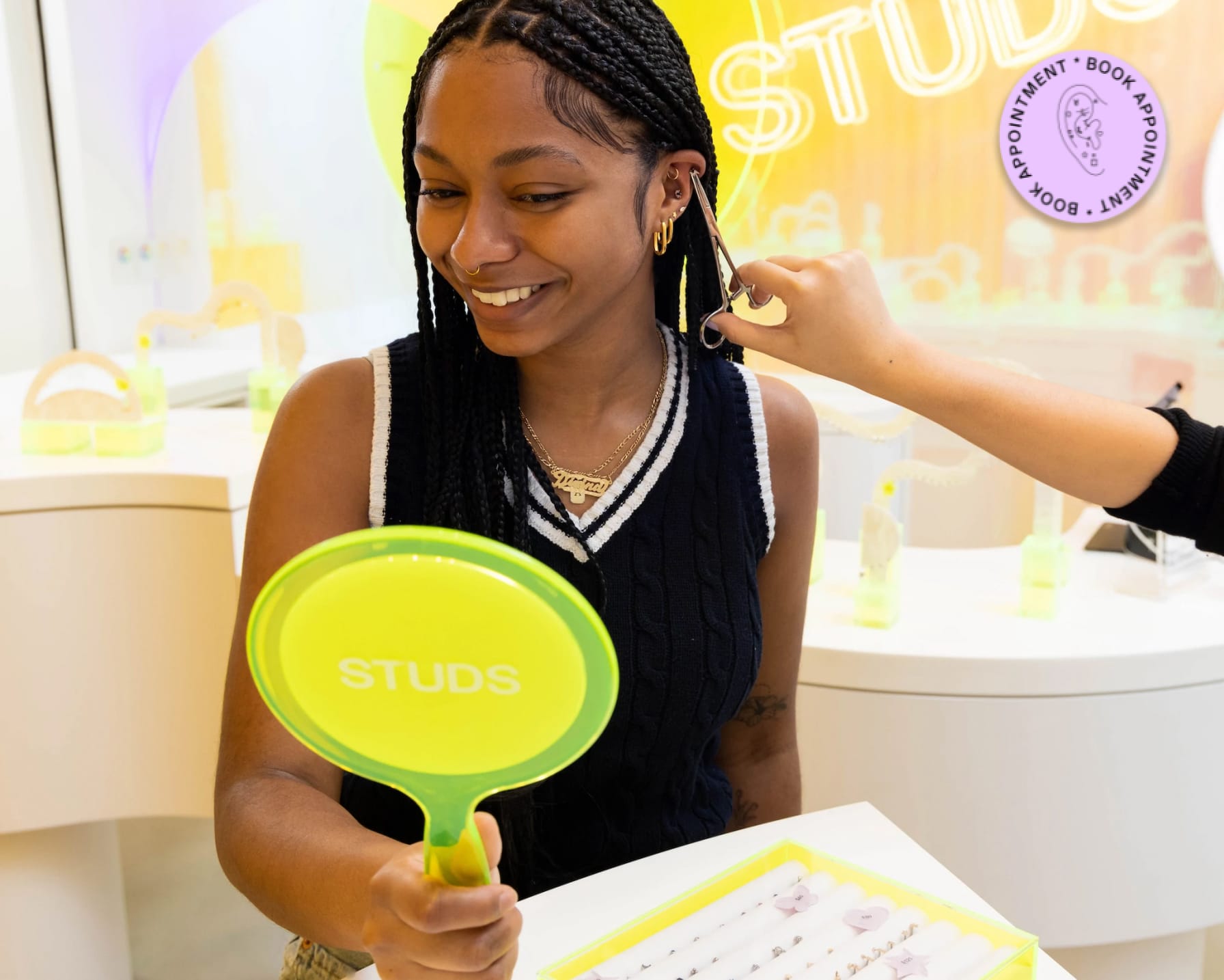 At Studs, customers can get pierced in a safe, supportive environment with an array of quirky earrings to create unique, personal looks.