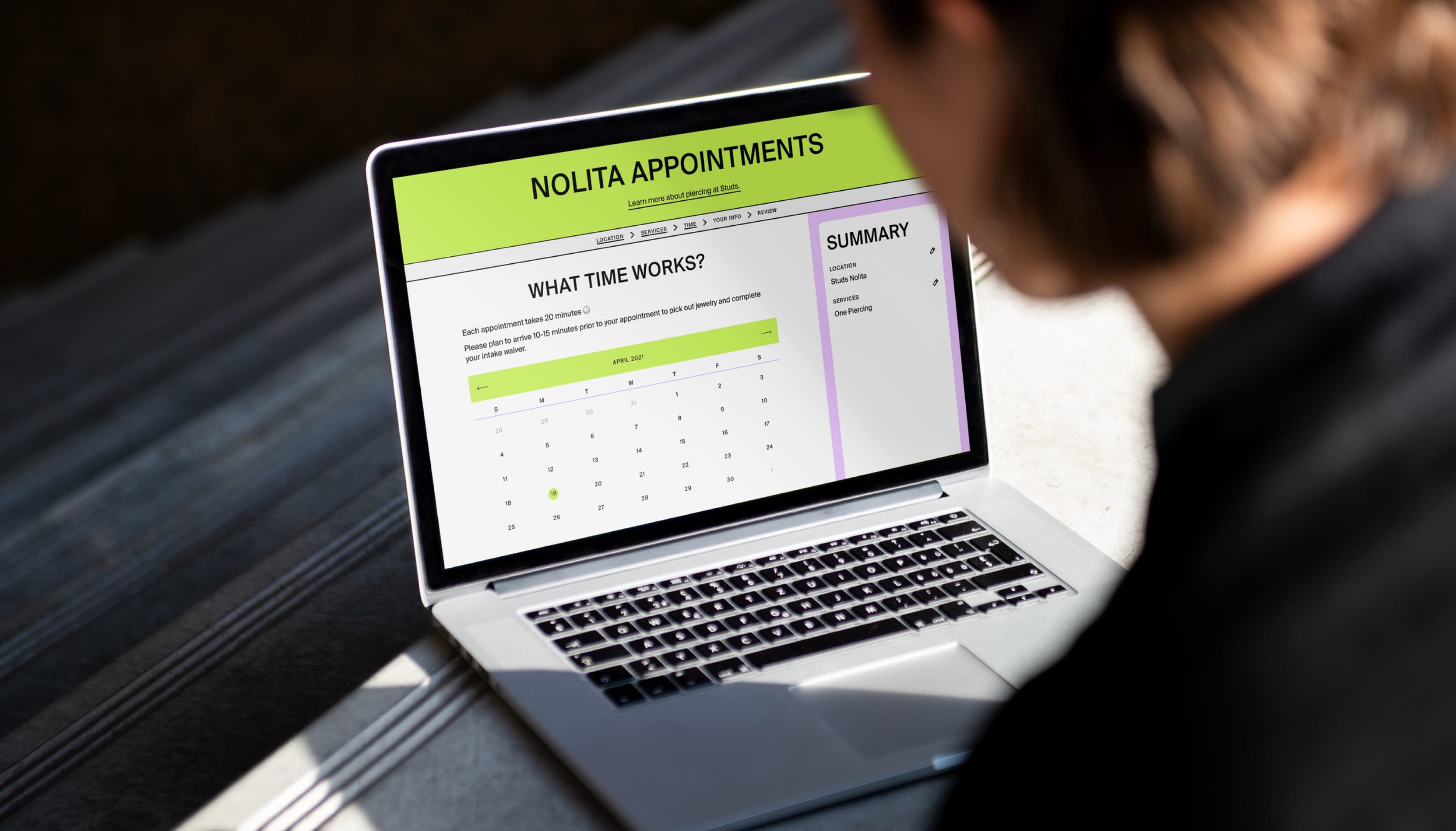 Studs originally used Acuity's out-of-the-box embeddable widget for their piercing studios across the United States to book and manage appointments.