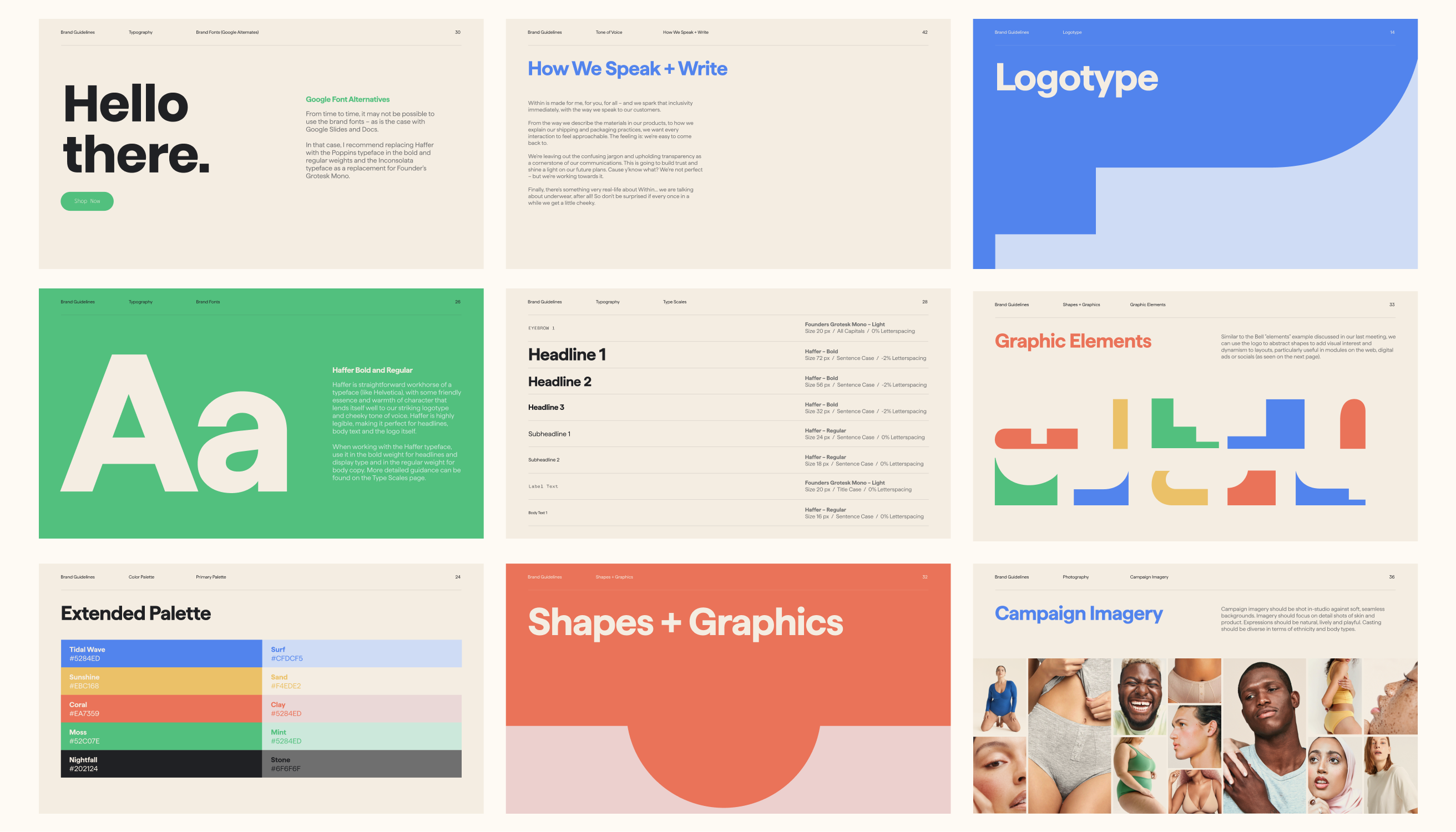 Together, we helped define the brand's values, create high standards for Within's tone of voice, built out a series of taglines, the identity system, an ecommerce website launch strategy and more. Pact built the Within brand from initial ideation to launch and continues to support them as they grow.